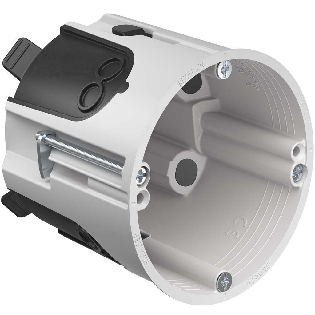 Pojedyncze pierścienie przednie ThermoX® (9300-43). Obudowa podtynkowa ThermoX® do montażu opraw wpuszczanych halogenowych i obrotowych LED w różnych konstrukcjach sufitowych. Obudowa chroni otaczający materiał (folię paroizolacyjną, izolację itp.) przed bardzo wysokimi temperaturami pracy lampy, zachowując w ten sposób szczelność. Średnica montażowa oprawy/głośnika: 82 mm