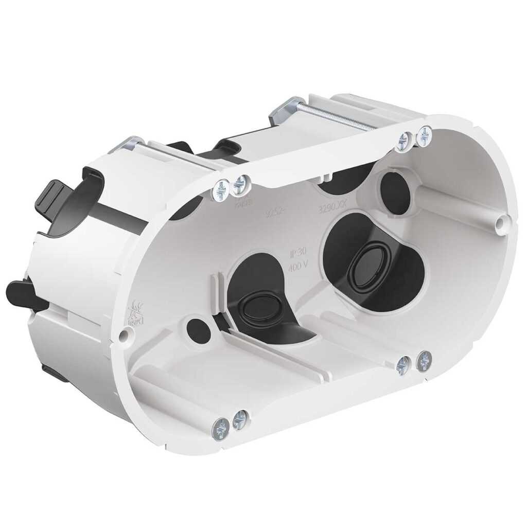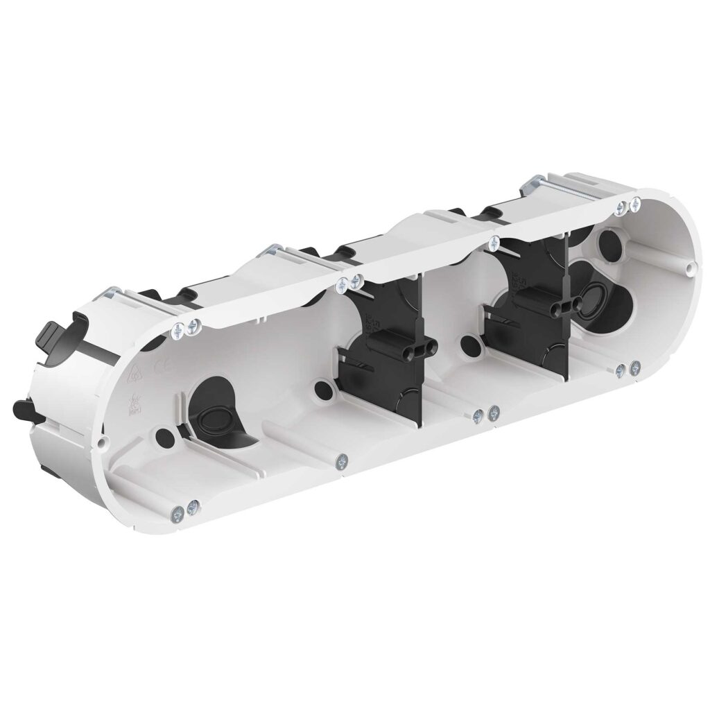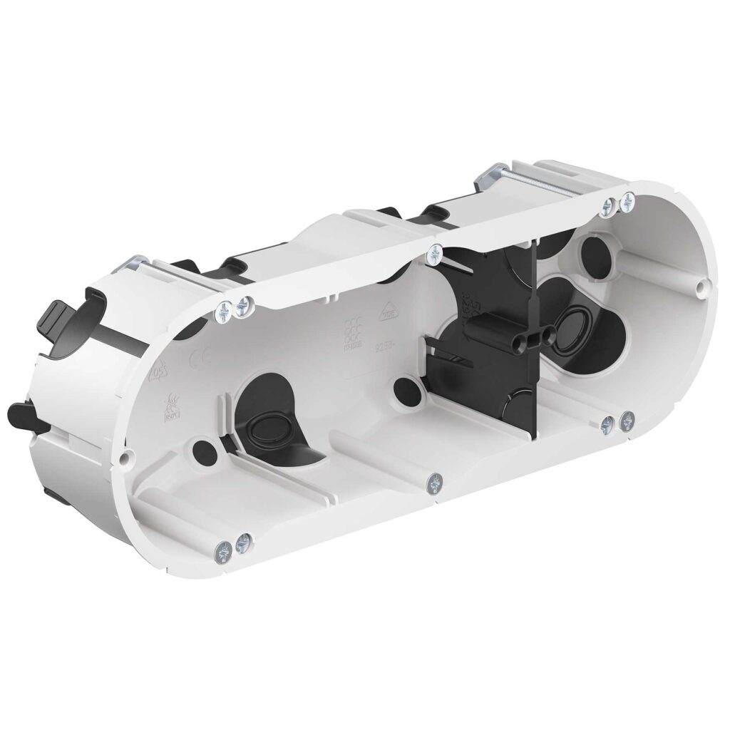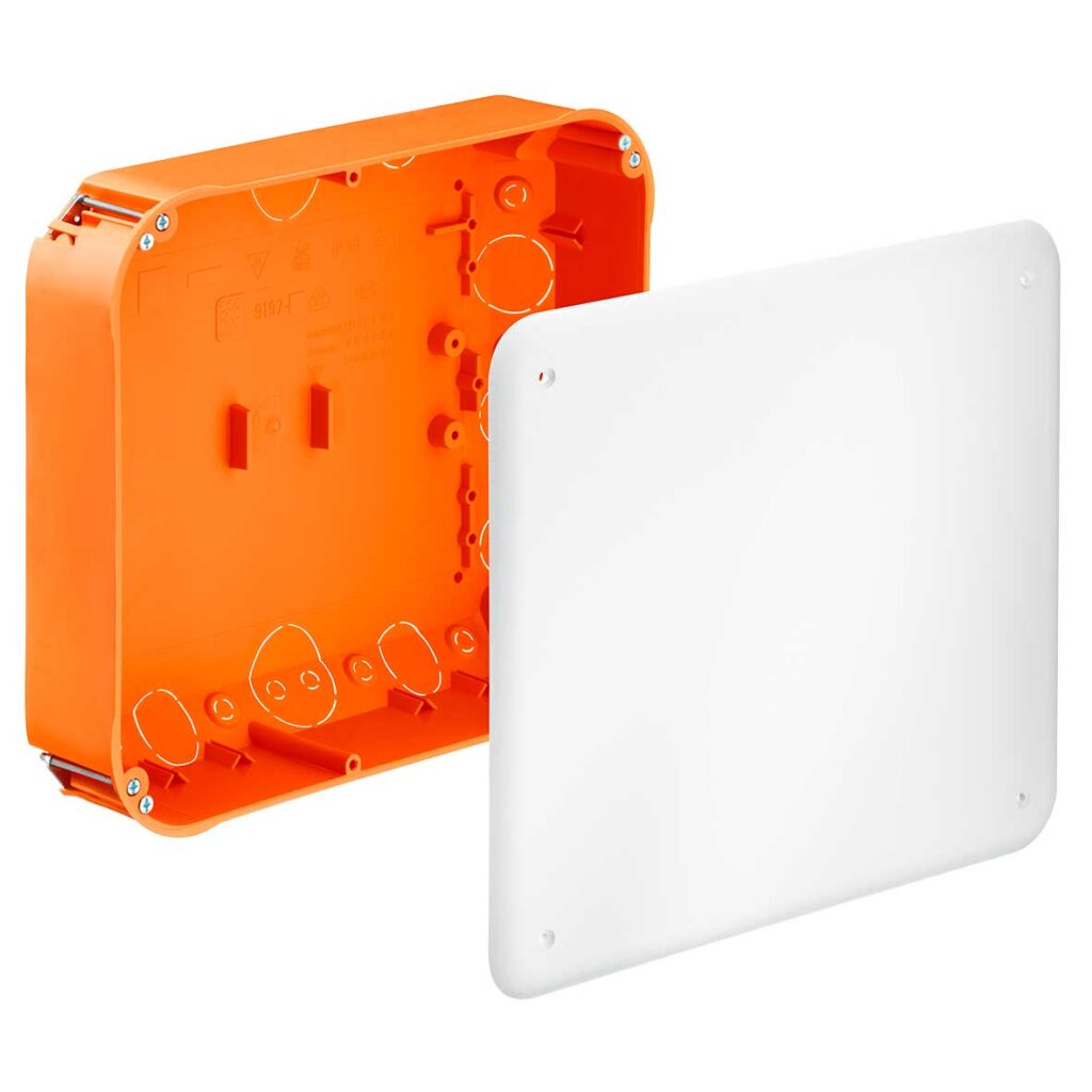 Skrzynka przyrządowa serii O ECON® 63, hermetyczna, głębokość 49 mm (9263-22). Hermetyczne puszki do ścian szczelinowych O-range® z technologią ECON® do energooszczędnych instalacji elektrycznych zgodnie z EnEV, a także do instalacji w pomieszczeniach czystych lub w warunkach higienicznych. Elastyczna membrana uszczelniająca w technologii ECON® umożliwia hermetyczną instalację elektryczną. Głębokość: 49 mm|Wyfrezowany otwór Ř: 68 mm