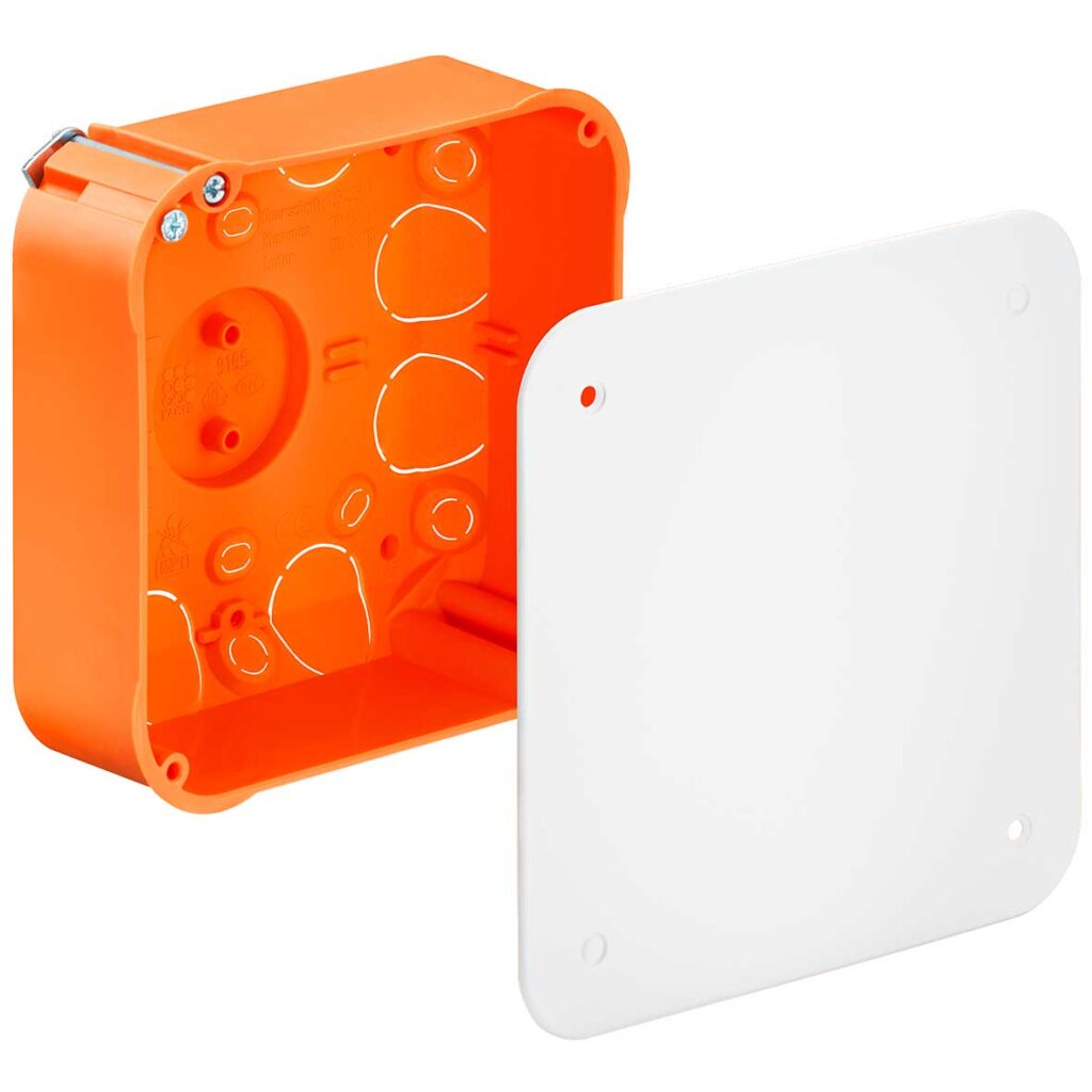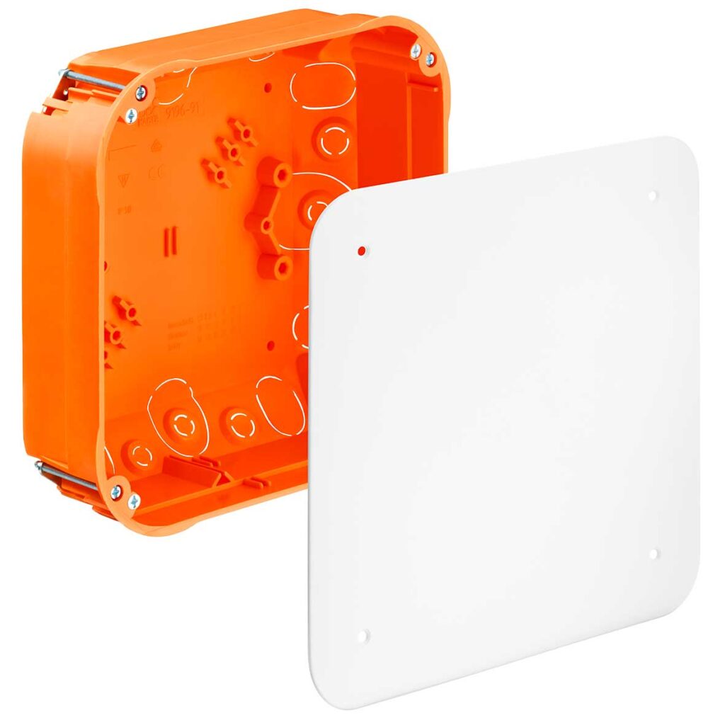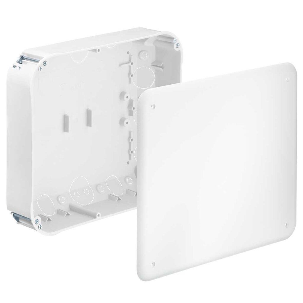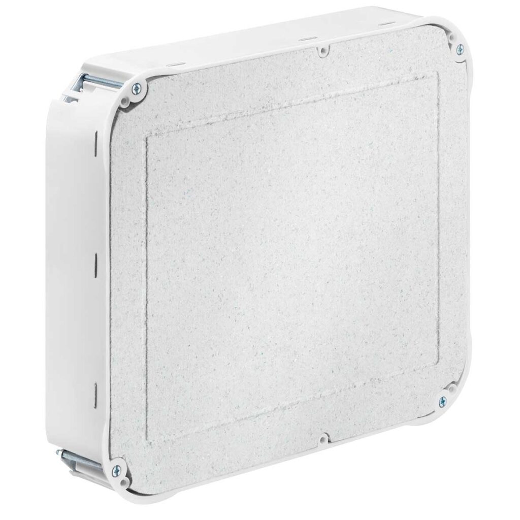 Puszka przyłączeniowa do ściany szczelinowej, 235 x 205 x 72 mm, bezhalogenowa, z pokrywą, ze śrubami do urządzeń