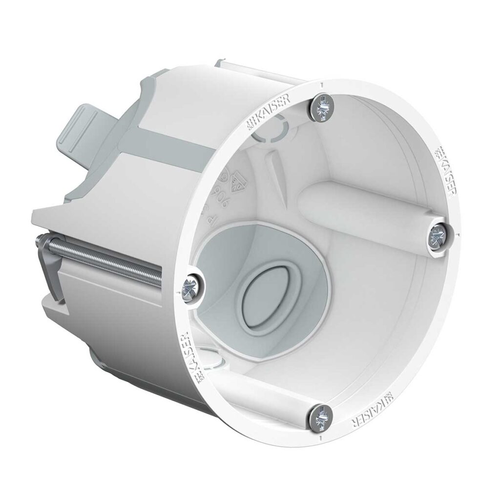 Skrzynka przyłączeniowa z uniwersalną pokrywą VDE, głębokość 50 mm (9071-01). Nowe puszki rozgałęźne KAISER do ścian szkieletowych ze sprawdzoną technologią mocowania i udoskonalonymi cechami produktu. Praktyczna konstrukcja i ukierunkowany dobór przepustów kablowych i rurowych umożliwiają szerokie spektrum zastosowań. Dodatkowe skrzynki do zastosowań specjalnych, takich jak montaż w ścianach z cienkich desek lub ścianach z litego …