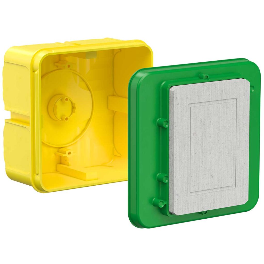 Uniwersalna obudowa podtynkowa z panelem z włókna mineralnego (1295-22). Uniwersalna obudowa wpuszczana do montażu niemal wszystkich rozmiarów i kształtów urządzeń w betonowych ścianach i sufitach. System obudów składa się z dziewięciu różnych obudów do zabudowy oraz bogatego wyposażenia dodatkowego. Obszar zastosowania: Do zabudowy|Rodzaj montażu: Beton wylewany na miejscu|Długość: 128 mm|Szerokość: 128 mm|Głębokość: 86 mm
